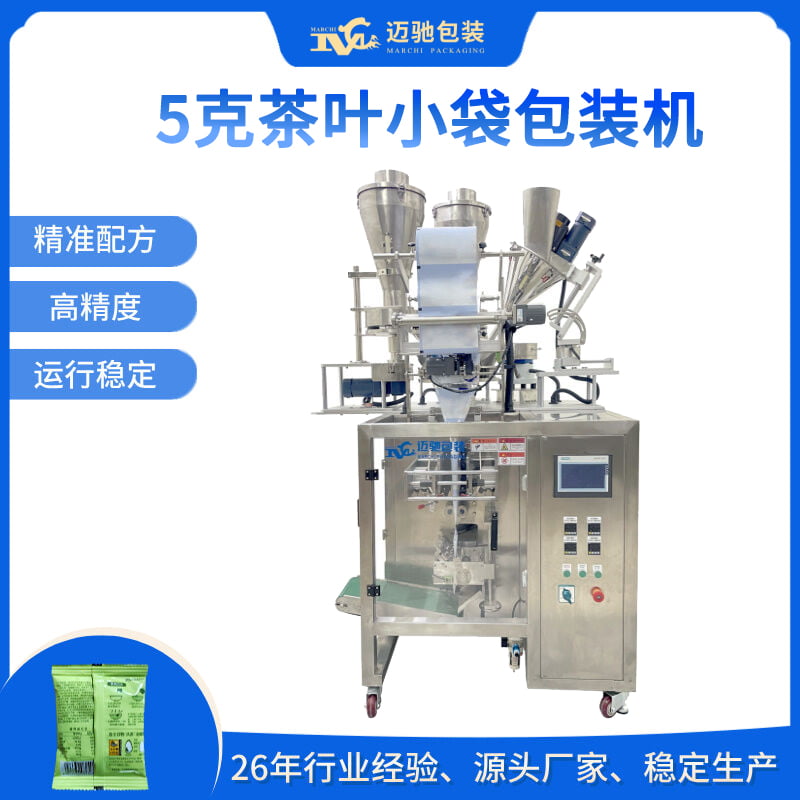 迈驰是一家专业生产全自动5克茶叶小袋包装机、小袋茶叶袋装包装机厂家,可根据客户不同物料特性定制一对一方案,为您解决包装精度问题。整厂方案设计,支持非标定制。26年包装行业经验,助力生产企业稳定生产,提高产能。