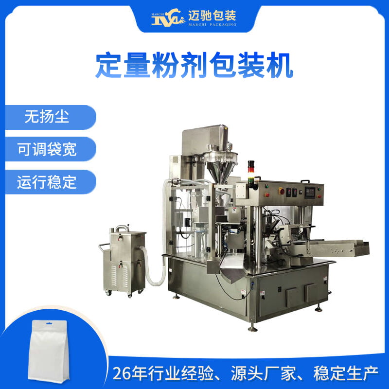 迈驰包装设备是一家26年全自动粉体包装线工厂,可包装淀粉、糖粉、预拌粉、辣椒粉、植脂末、孜然粉、五谷粉、生粉、薯粉、酵素粉、甜椒粉、椰粉、代餐粉、芝麻粉、调味粉、奶茶粉、豆浆粉、泡打粉,速溶饮料,吉士粉,香草粉等,您需求的粉体自动包装生产线可以点击详情了解更多。